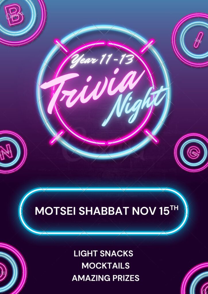We look forward to seeing all our Years 11 to 13 for a fun quiz on motsa’ei Shabbat 15th November from 7:30pm to 9:30pm. To book, please click here – tickets are just £3 for members and £4 for non members!